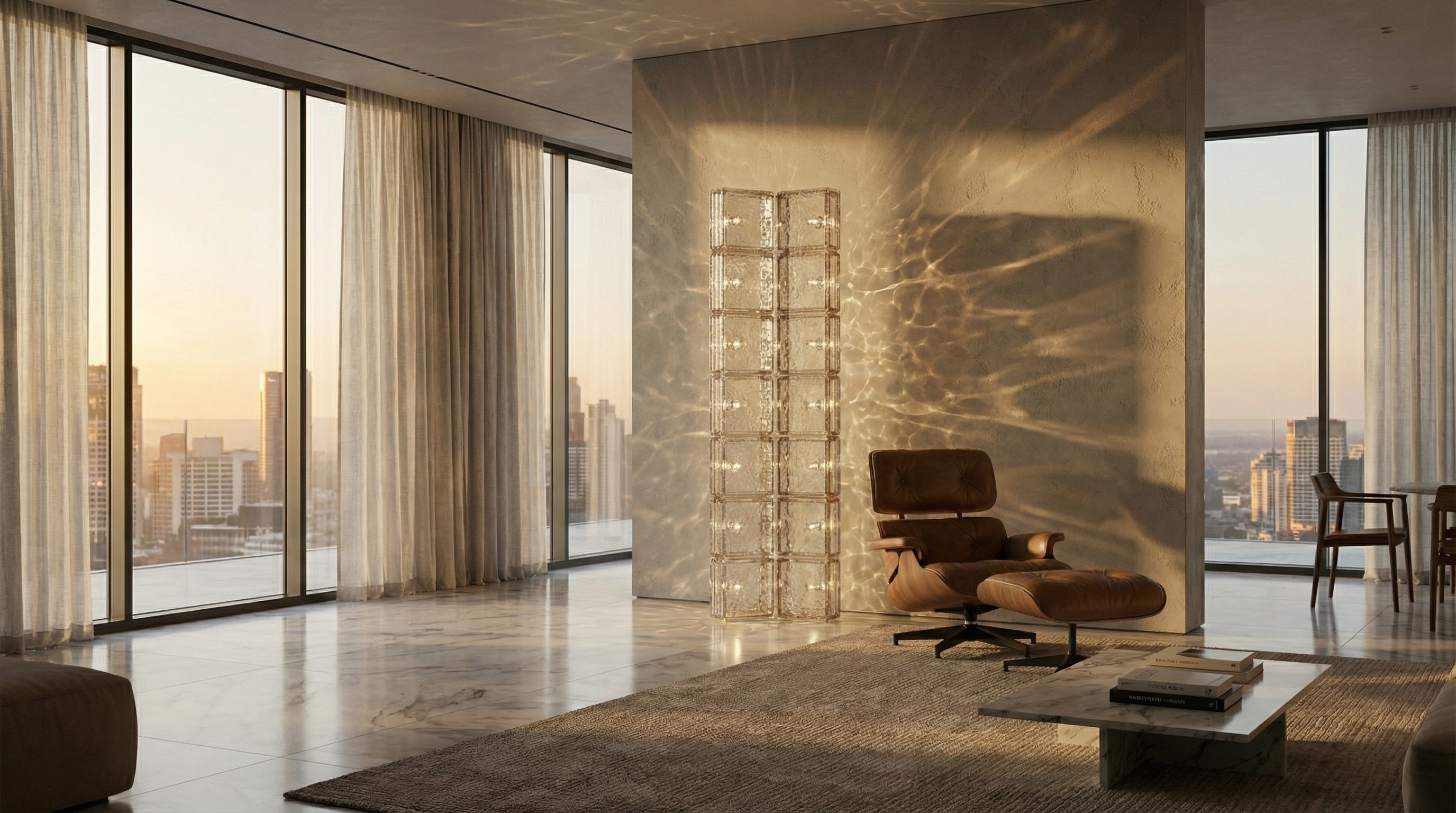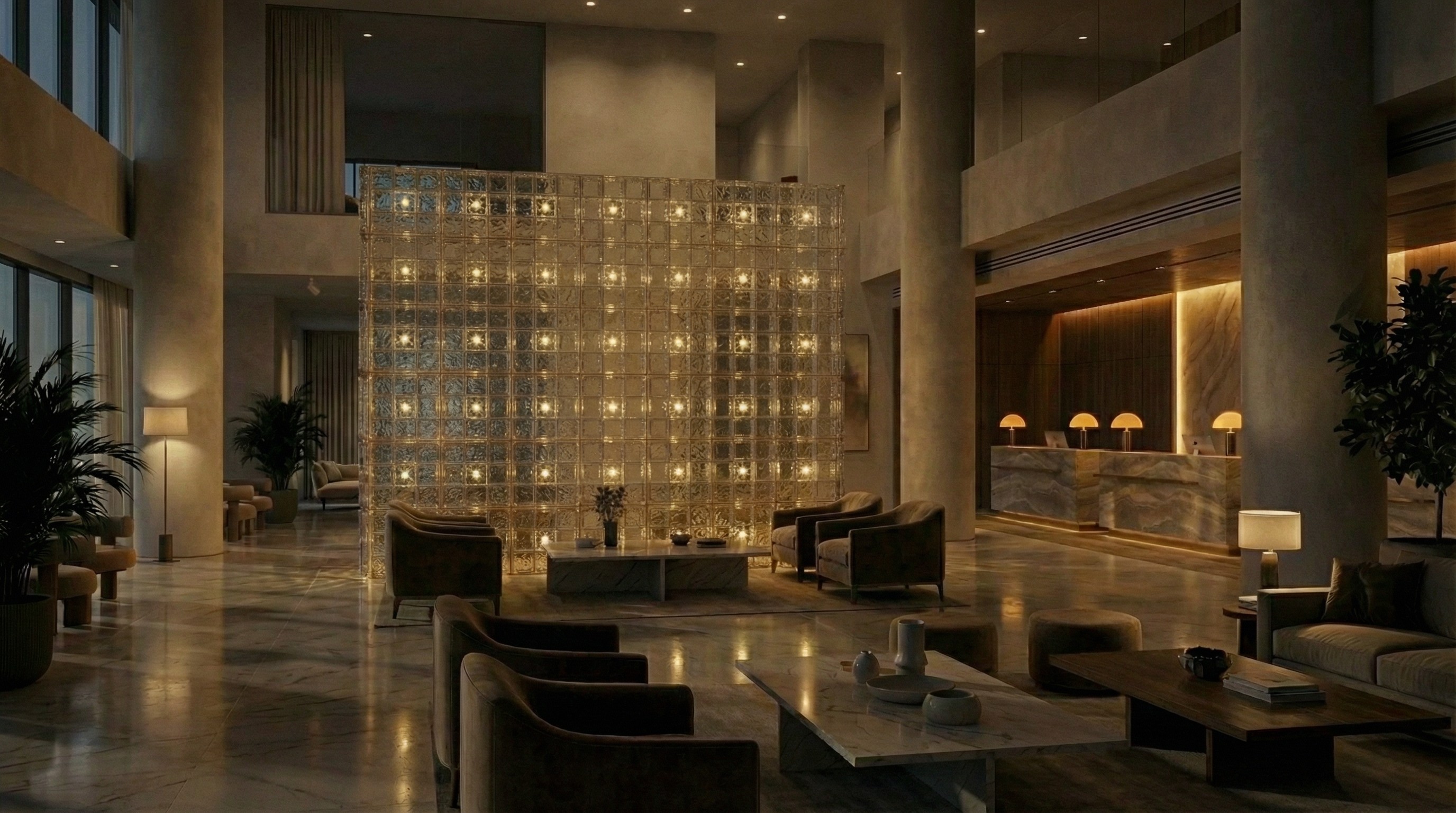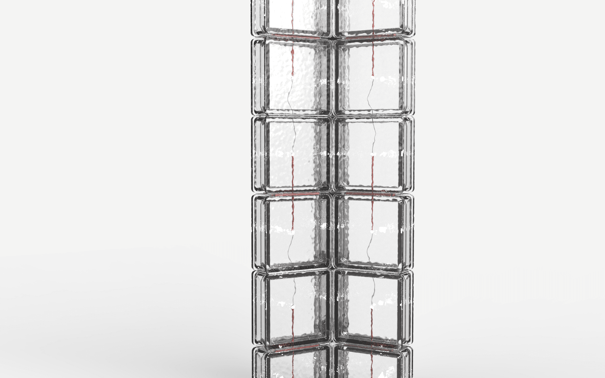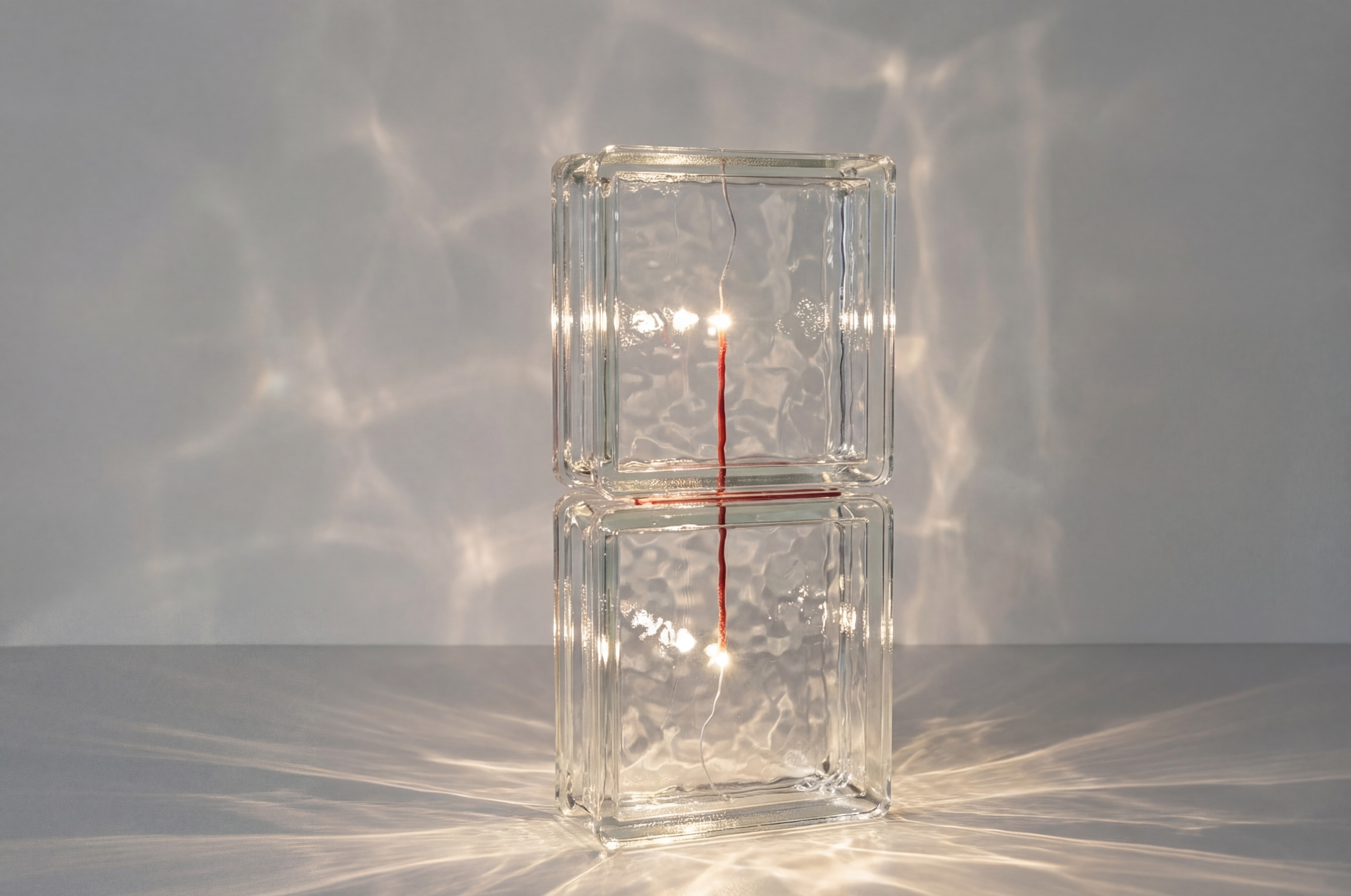 Strata is composed of modular glass brick elements, where light is held within a semi-transparent mass. Like geological layers, the material captures, interrupts, and slowly releases illumination revealing depth and density. Used as a single object or stacked into vertical columns, Strata allows light to emerge from weight, turning structure into a quiet, calming presence in space.