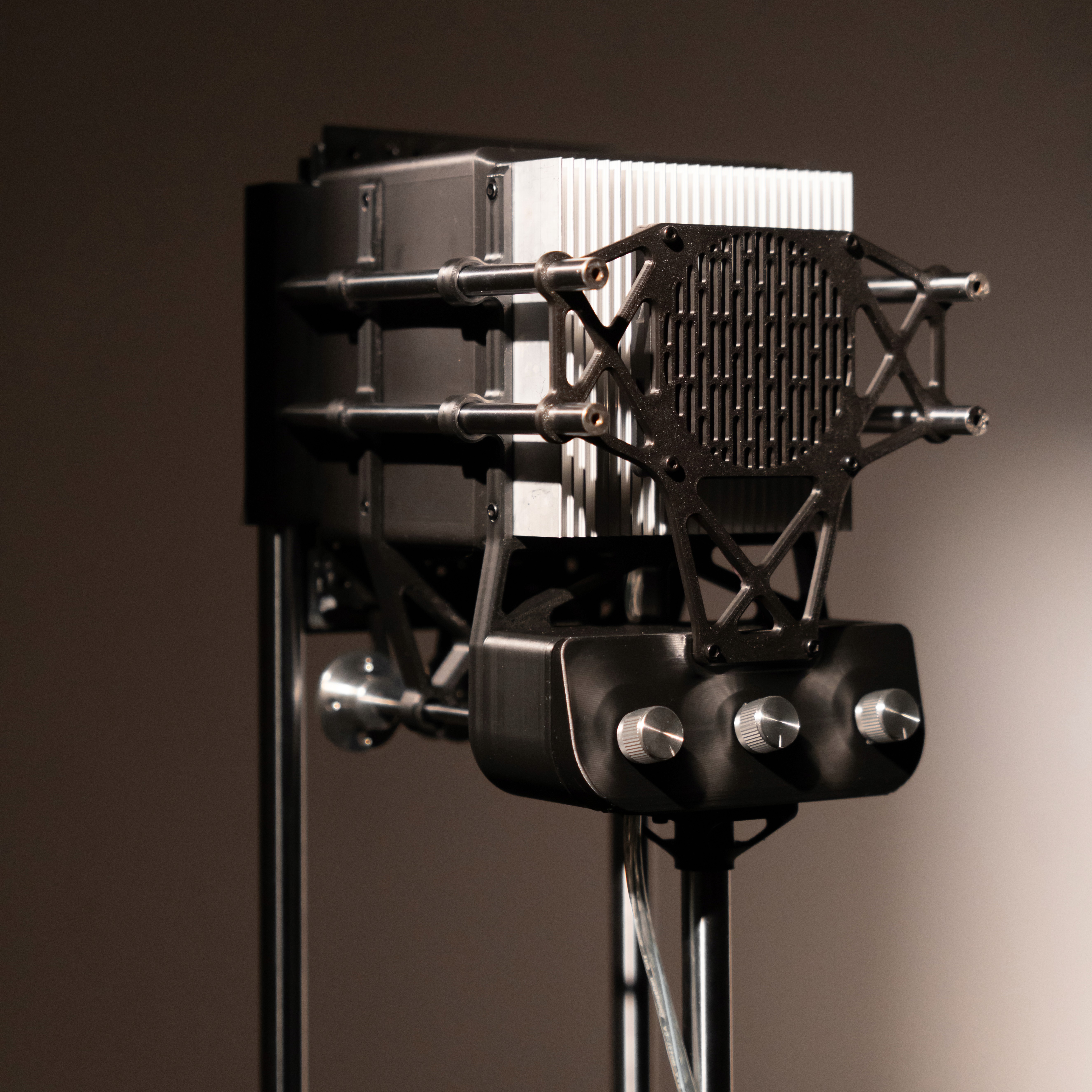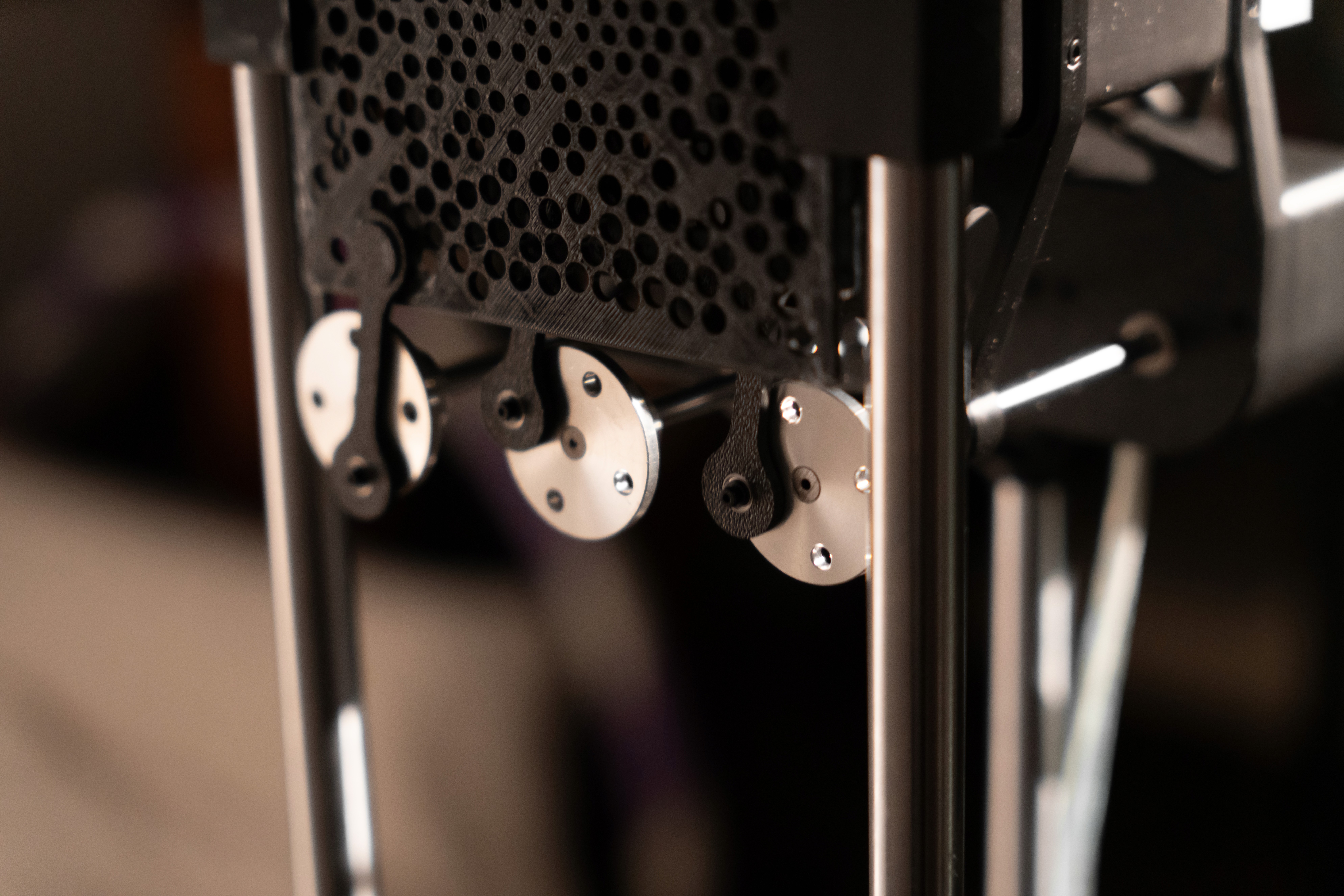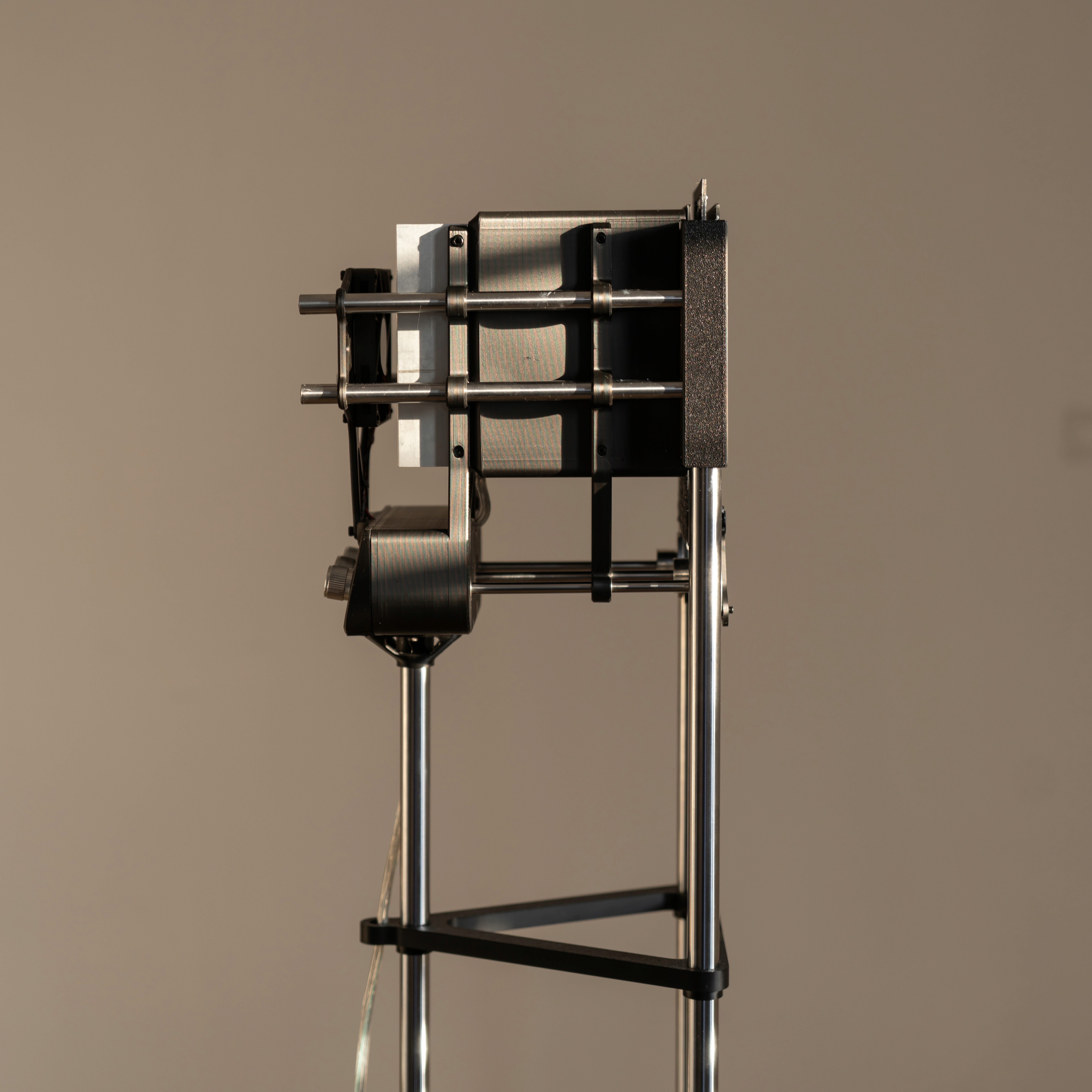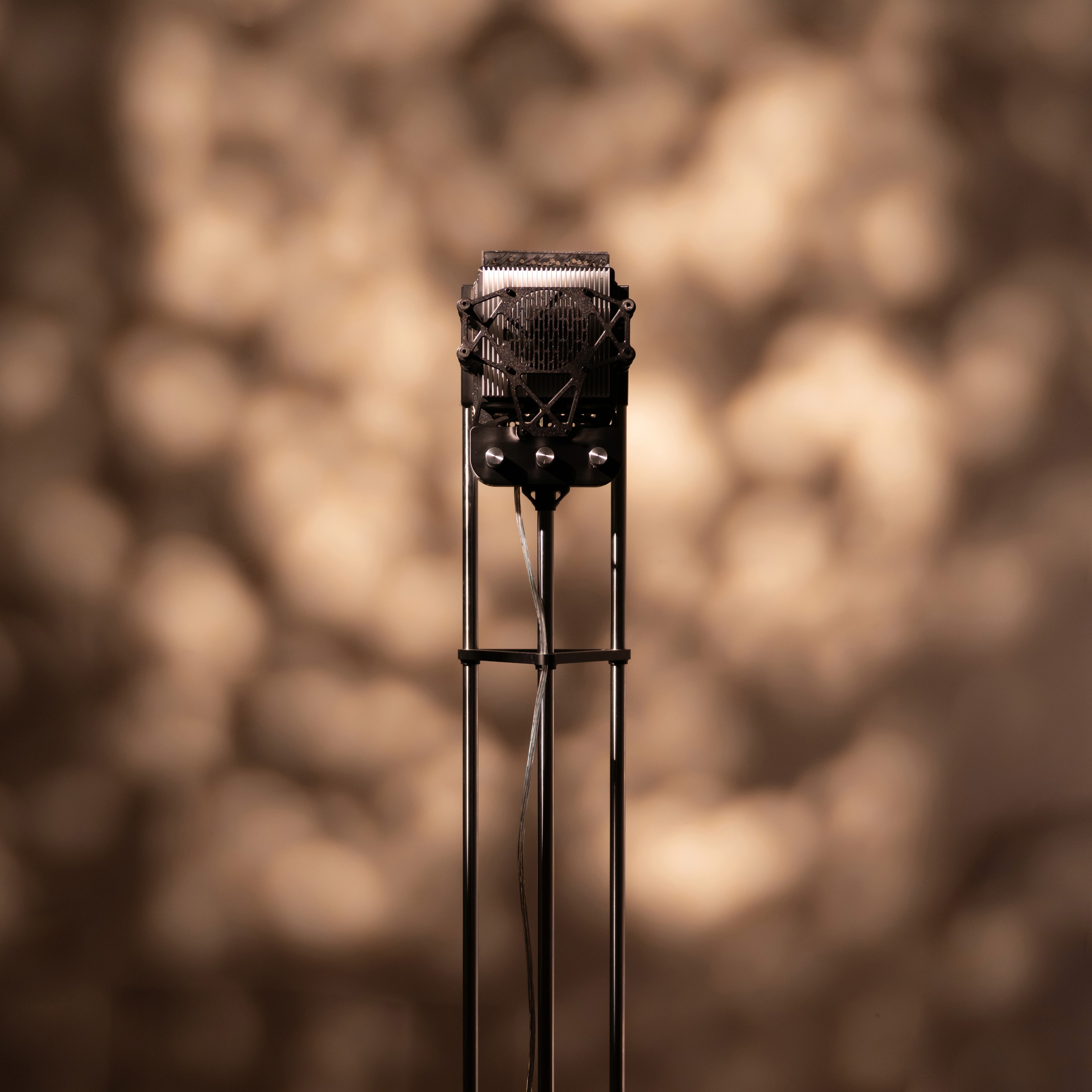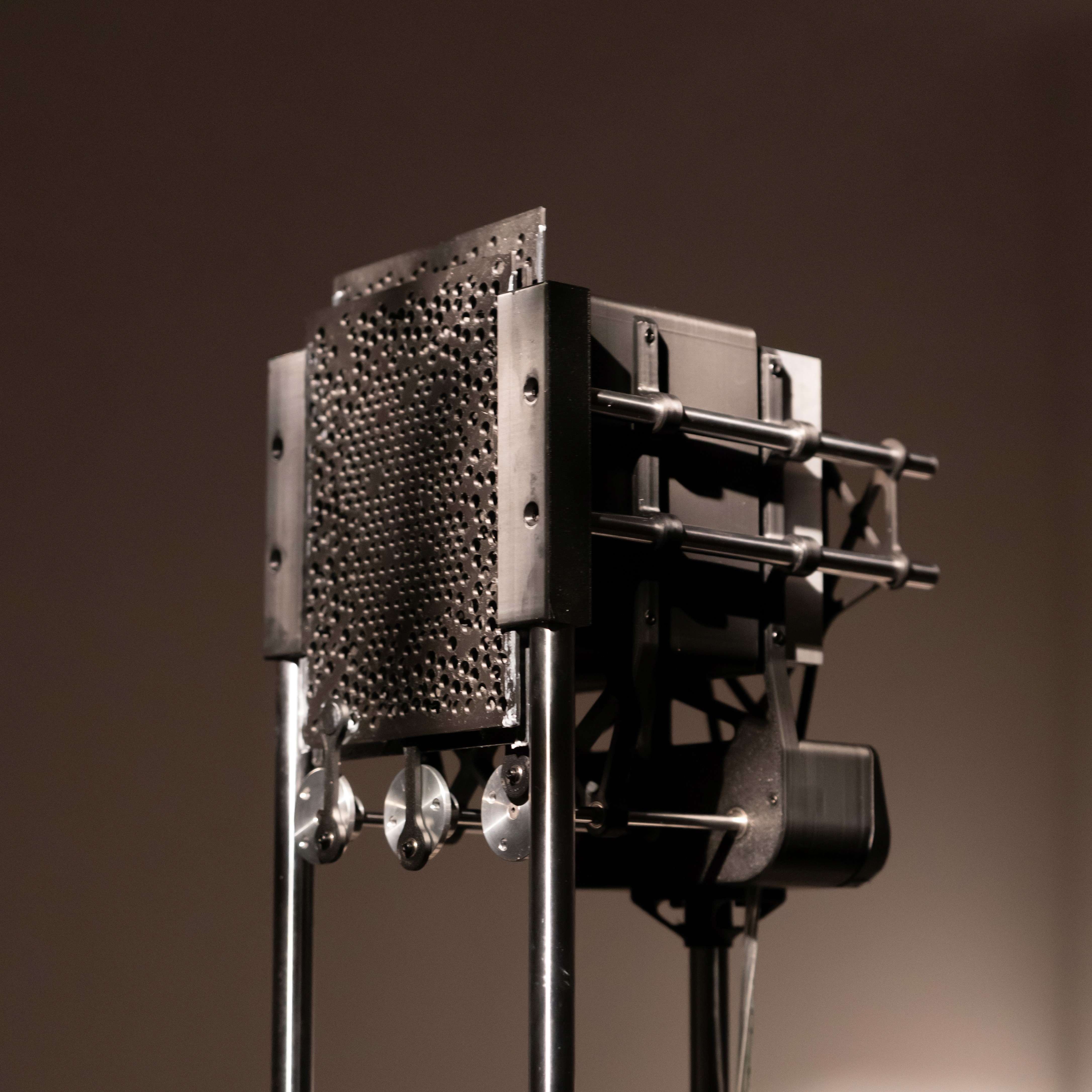 Canopy filters light mimicking a living roof of leaves. Mechanical filters move with a quiet rhythm, fragmenting and softenng each beam so that light drifts, layered and breathing. Shadows and glow mingle to evoke a quiet forest canopy, where light becomes a hushed whisper that wraps the space in calm.